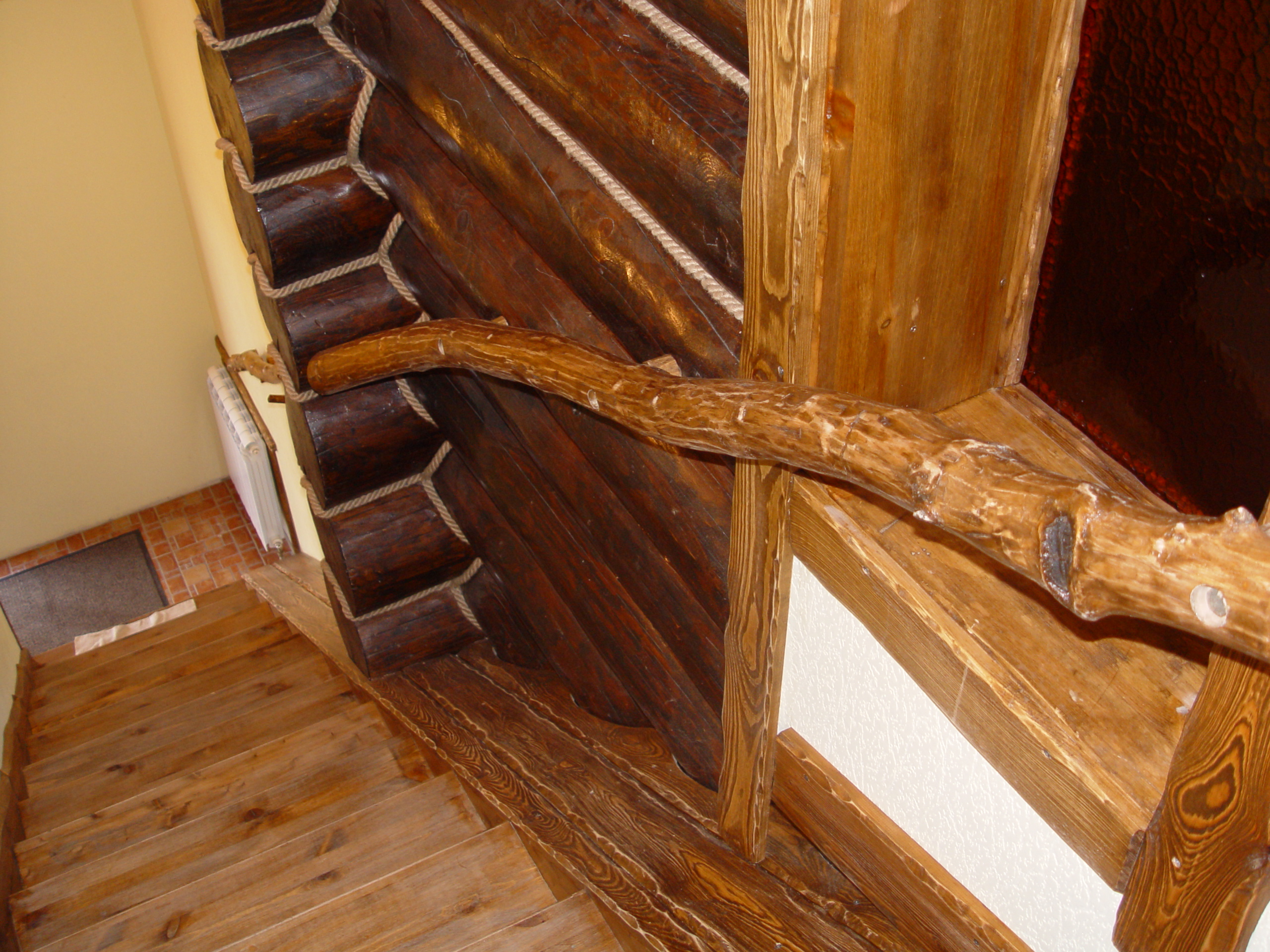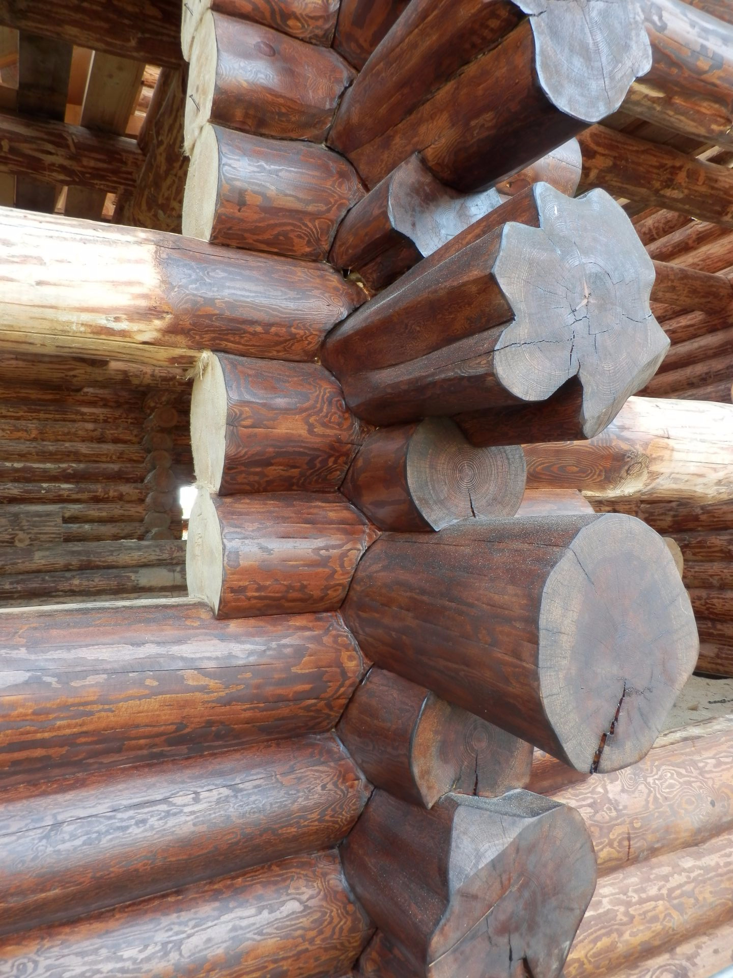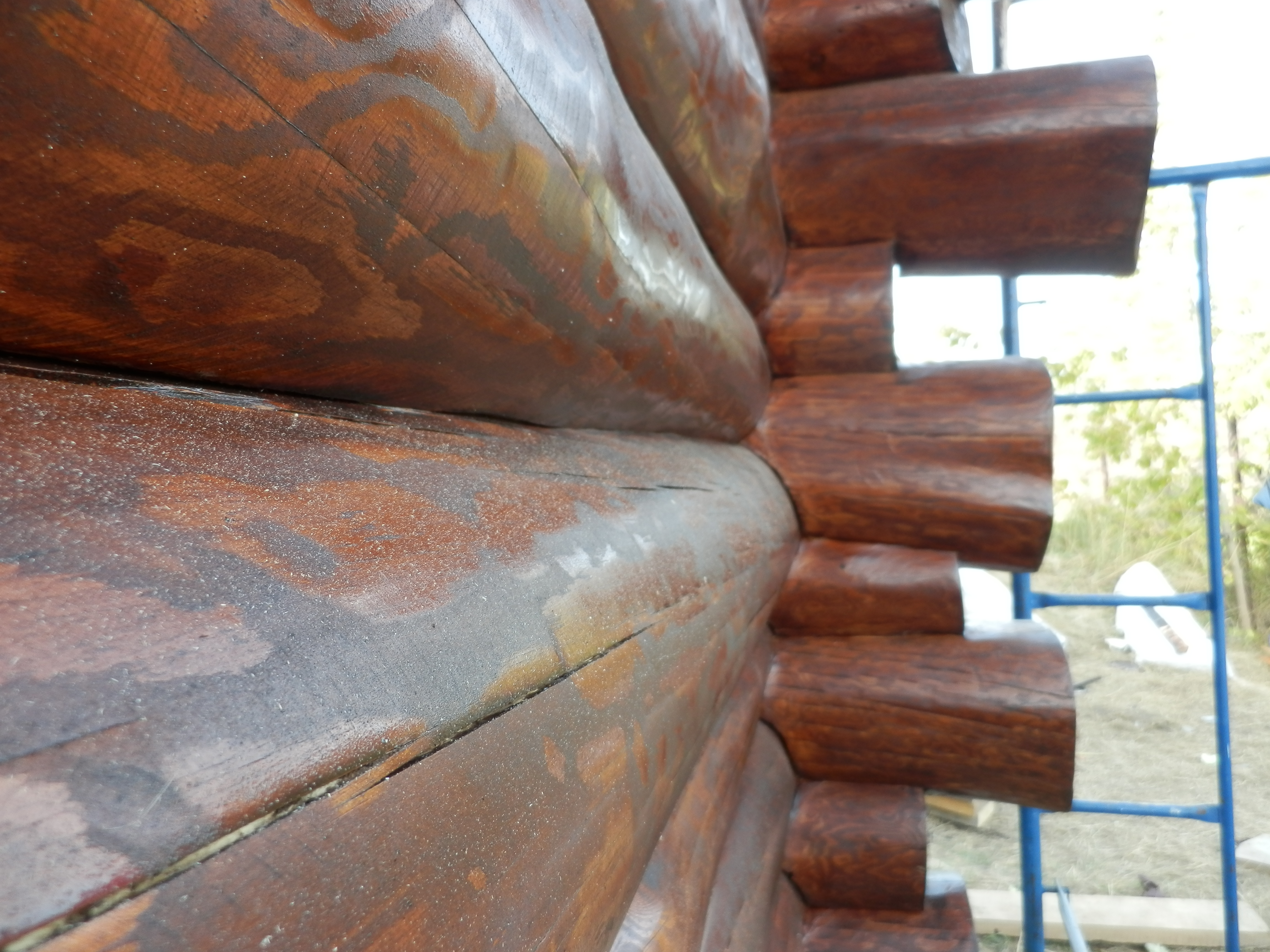 Основным преимуществом ручной обработки бревен является неповторимый внешний облик дома и максимальное сохранение защитных функций материала. За счет того, что бережно снимается очень тонкий наружный слой, а обработка направлена вдоль волокон древесины, сохраняется структура дерева, остается нетронутым самый верхний ценный слой, концентрирующий в себе все основные защитные вещества, оберегающие дерево от внешнего воздействия и разрушения.